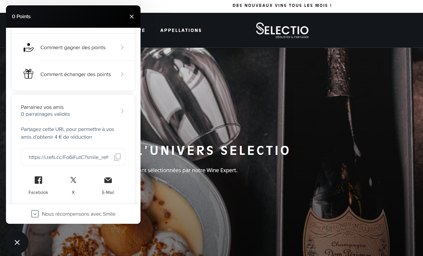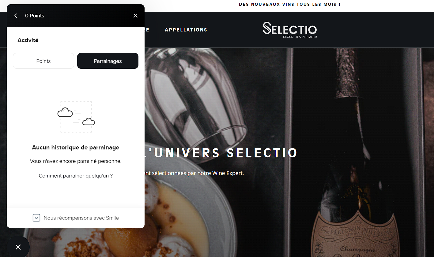 Chaque parrainage vous rapporte 4 € immédiatement valable sur Selectio .